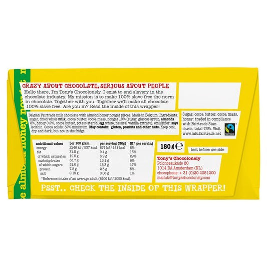 Tony's 32 % Almond Honey Nougat Chocolate Bar 180g
