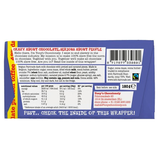 Tony's Dark Milk Pretzel Toffee Chocolate Bar 180g