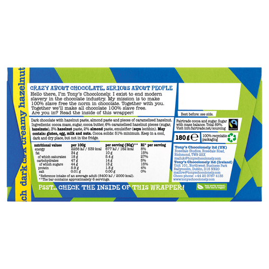 Tony's Chocolonely Dark Creamy Hazelnut Crunch 180g