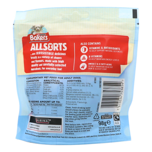 Bakers Allsorts Dog Treats with Chicken, Beef & Lamb 98g