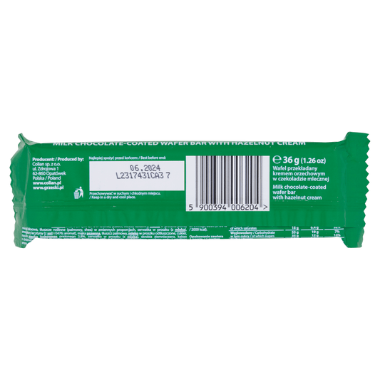 Goplana Grze_ki Milk Chocolate-Coated Wafer Bar with Hazelnut Cream 36g